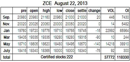 The certified stock was unchanged at 222 lots (1 lot is equal to 185 ±5 bales).