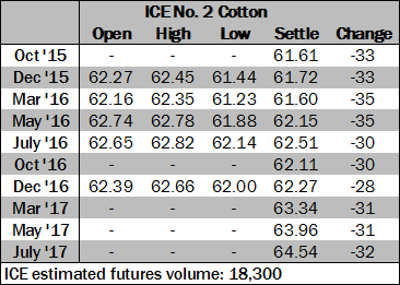 After failing to break through a key technical level of 62.50 cents, though, renewed selling occurred. Futures began falling, and nearby deliveries ended the day on negative ground.