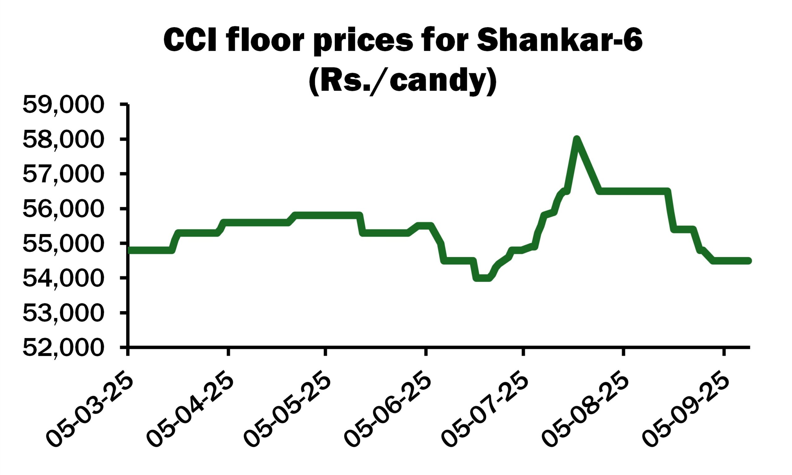 Meanwhile, the floor price for Shankar-6 at the Cotton Corporation of India (CCI) auction this afternoon is unchanged at ₹54,500 per candy (78.75 cents per lb). Around 762,000 bales are on offer, the lowest quantity since June. Total sales reached 8.2 million bales on September 10, an increase of 800,000 since August 28.