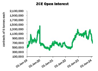 ZCE also launched a cotton yarn futures contract (carded 32s single cotton yarn) in August 2017. In contrast to the raw cotton contract, which represents a seasonal commodity, yarn is quoted for every month of the year.