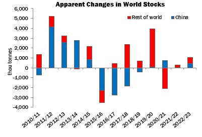 As a result of the above changes, world stocks are forecast to increase by 1,023,000 tonnes by the end of the current season, down from 1,258,000 put forward at the end of December.