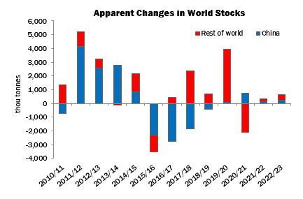 On July 13, there began a programme of State Reserve purchasing from ginners in Xinjiang, who are burdened by large stocks for which the break-even sales price is several thousand yuan above the current market. Since the auction process incorporates a maximum purchase price close to local spot market levels, ginners have shown limited enthusiasm and the quantities absorbed were modest by the end of the period.