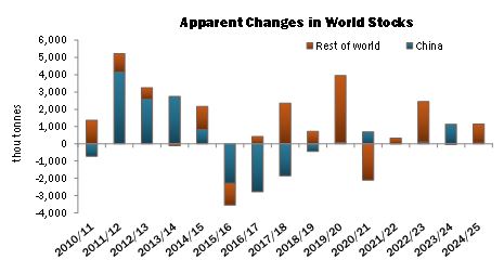 In the Southern Hemisphere, picking expanded under good weather in Brazil and a bumper crop remains in prospect. A substantial upward adjustment was also made to our figure for 2024/25 reflecting an increase in expectations of area.
