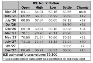 ICE No. 2 cotton settles on positive note