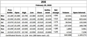 China: ZCE sharply higher