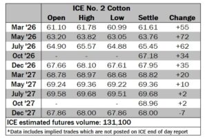 ICE No. 2 cotton settles on positive note