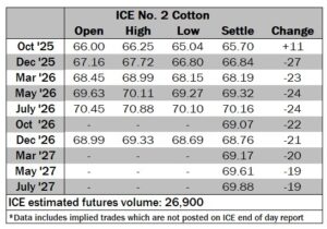 ICE No. 2 cotton settles mostly on modest losses