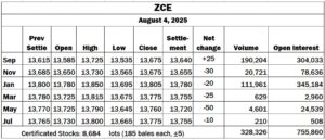 China: ZCE mostly lower