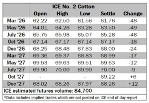 ICE No. 2 cotton settles under pressure