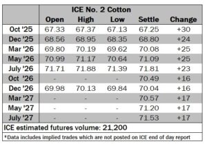 ICE No. 2 cotton settles modestly higher