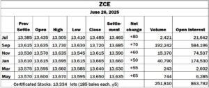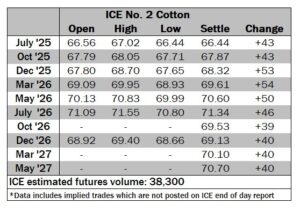 ICE No. 2 cotton settles to the upside