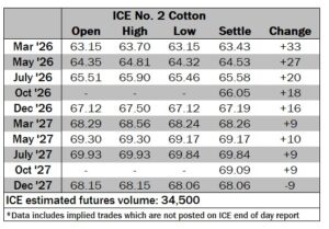 ICE No. 2 cotton settles on modest gains