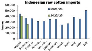 Indonesia: raw cotton imports low in September