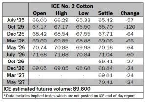 ICE No. 2 cotton settles to the downside