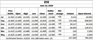 China: ZCE modestly higher