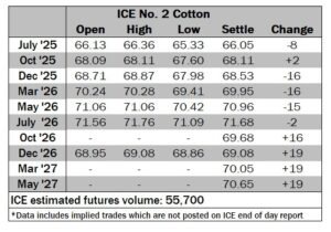ICE No. 2 cotton settles mixed
