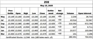 China: ZCE higher