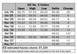 ICE No. 2 cotton settles mixed