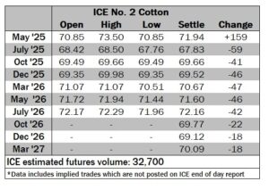 ICE No. 2 cotton settles to the downside