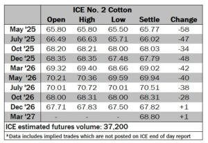 ICE No. 2 cotton settles to the downside