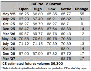 ICE No. 2 cotton settles on negative territory