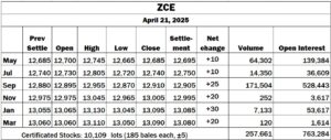China: ZCE ends moderately lower