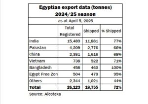Egypt: export sales and shipments