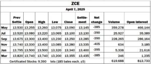 China: ZCE falls sharply