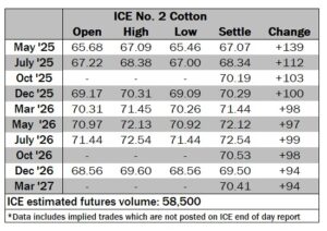 ICE No. 2 cotton settles on strong gains