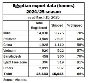 Egypt: export sales and shipments
