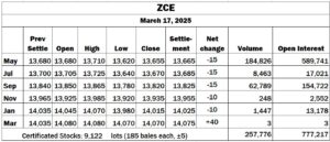 China: ZCE mostly lower