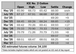 ICE No. 2 cotton settles mixed