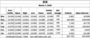 China: ZCE moderately higher