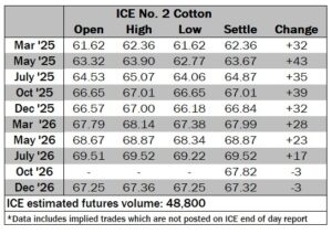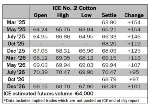 ICE No. 2 cotton settles sharply higher