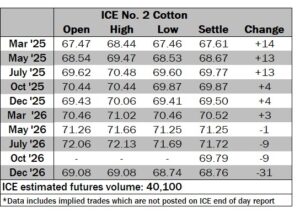 ICE No. 2 cotton settles mixed