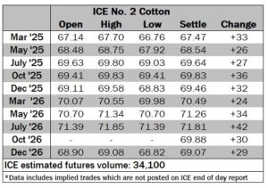 ICE No. 2 cotton settles modestly higher