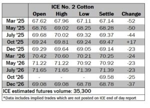 ICE No. 2 cotton settles mostly under pressure