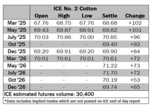 ICE No. 2 cotton settles on strong gains