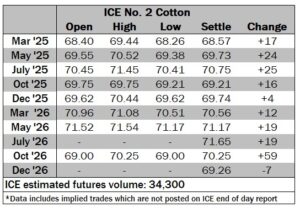 ICE No. 2 cotton settles on modest gains