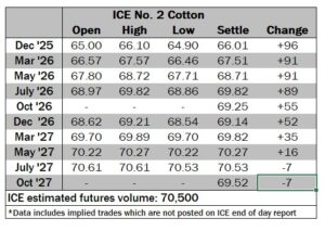 ICE No. 2 cotton settles on positive note