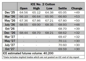 ICE No. 2 cotton settles on moderate gains