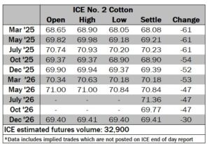 ICE No. 2 cotton settles to the downside
