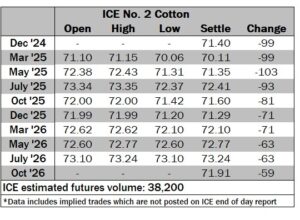 ICE No. 2 cotton settles to the downside