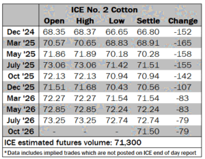 ICE No. 2 cotton settles sharply lower