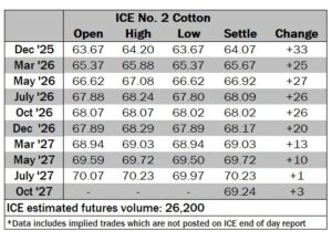 ICE No. 2 cotton settles on positive note