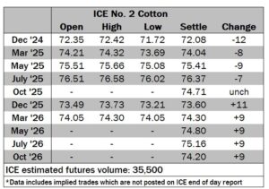 ICE No. 2 cotton settles mixed