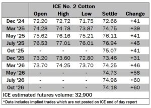 ICE No. 2 cotton settles to the upside