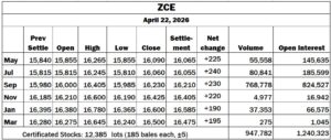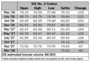 ICE No. 2 cotton settles on sharp losses