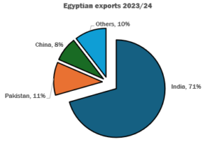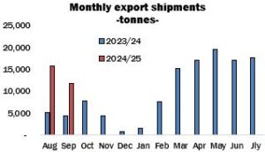 The latest data from Alcotexa reveal that export registrations during the week ended October 5 amounted to 160 tonnes, comprising 110 of Giza 94 and 50 of the ELS Giza 96 variety. The total for the 2024/25 marketing year …