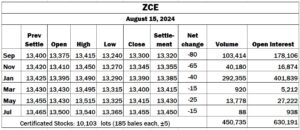 China: ZCE lower